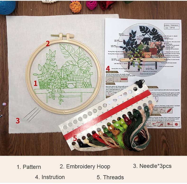 The Plants Embroidery Kit includes everything you need to start crafting your masterpieces right away: